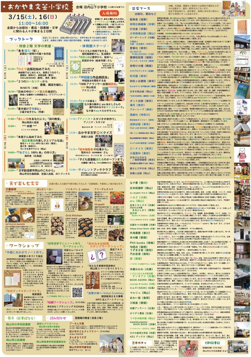 「おかやま文芸小学校」は、岡山市が進める文化事業「おかやま文学フェスティバル」の一環として開催される本のイベントです。