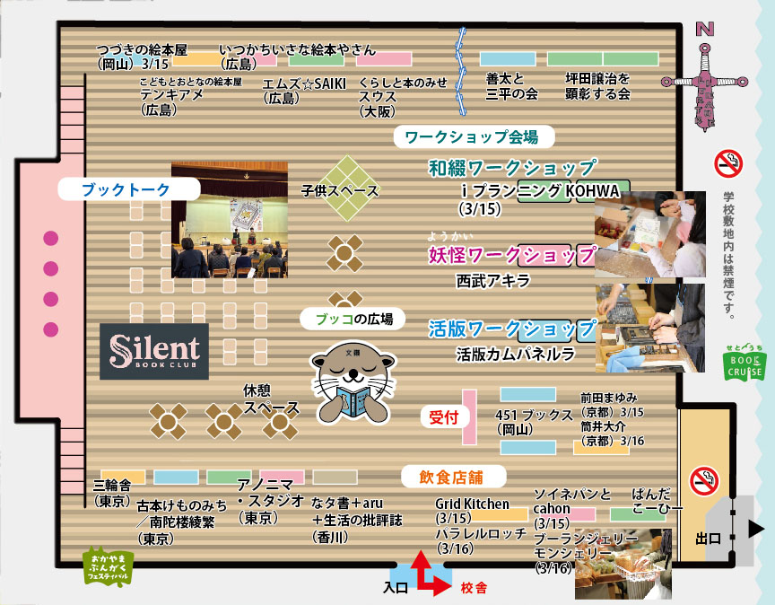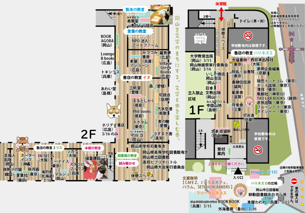 廃校となった旧内山下小学校を舞台に、岡山県内外の書店・出版社・雑貨店などたくさんのブースのほか、トークイベントやワークショップも。