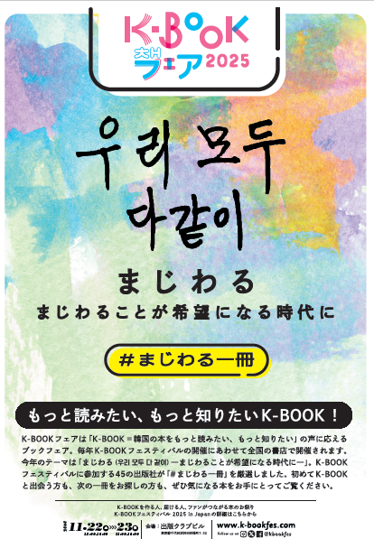 11/22(土)、23(日)に東京・神保町で開催されるK-BOOKフェスティバルの連動企画。 フェスティバルに参加する出版社がその年のテーマに合わせて選んだ一冊を展開します。 今年のテーマは「まじわる 우리 모두 다 같이 ―まじわることが希望になる時代に― 」 みなさまにとっての「まじわる」一冊をぜひ手にとってみてください。